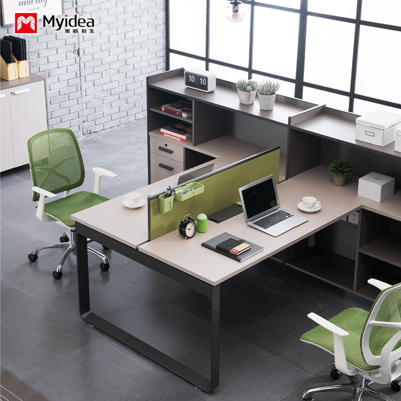 Company Office Screen Style Computer Desk with Two Person Design Sense,desk with file Cabinet for Storage office Desk