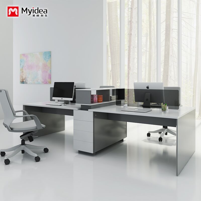 Scrivania per staff a 4 persone con cassetti contenitori, scrivania da ufficio verniciata bianca lucida